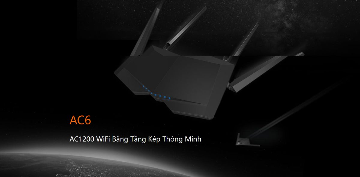 AC6 là một Bộ định tuyến WiFi thông minh 2 băng tầng phát tín hiệu mạnh mẽ và hiệu suất ổn định. Nó hỗ trợ Wi-Fi thế hệ thứ 5 chuẩn 802.11ac và tốc độ 2 băng tầng lên đến 1167Mbps. AC6 có khả năng xuyên tường mạnh hơn gấp 2 lần so với các router bình thường với bộ khuếch đại sóng được tích hợp, công nghệ beamforming+ thông minh và 4 ăng-ten 5dBi HG. Bạn có thể tận hưởng tốc độ chơi game và video HD không bị gián đoạn bất cứ lúc nào bất cứ nơi nào. Ngoài ra, AC6 hỗ trợ công nghệ tiết kiệm điện năng thông minh, ứng dụng quản lý từ xa, tạo ra một mức tiêu thụ điện năng thấp và hệ sinh thái thân thiện thông minh cho cả gia đình bạn.