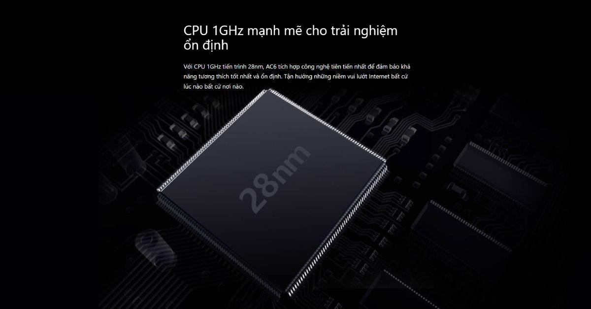 Với CPU 1GHz tiến trình 28nm, AC6 tích hợp công nghệ tiên tiến nhất để đảm bảo khả năng tương thích tốt nhất và ổn định. Tận hưởng những niềm vui lướt Internet bất cứ lúc nào bất cứ nơi nào.