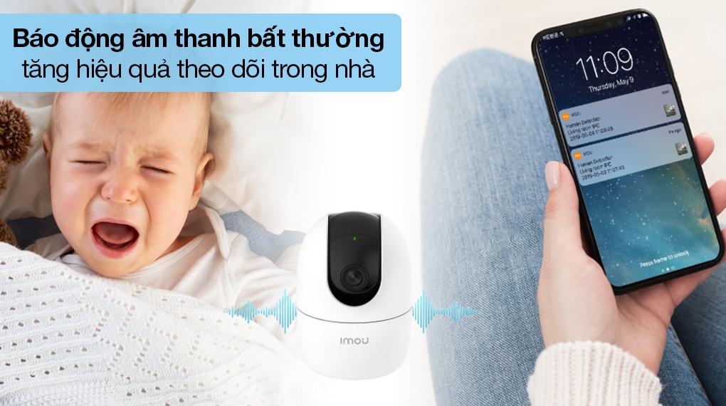 Imou Ranger 2 trang bị tính năng báo động âm thanh bất thường giúp bạn nhận biết những âm thanh gây bất thường như vật thể rơi bằng cách gửi thông báo tức thì đến điện thoại thông minh của bạn. Đặc biệt, nó còn phát hiện tiếng em bé khóc từ đó bạn có thể chăm sóc cho bé được tốt hơn bên cạnh làm những công việc khác.
