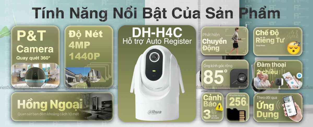- CAMERA H4C với Mic độ trung thực cao, nhận rõ ràng giữ liên lạc thông qua APP mọi lúc, mọi nơi