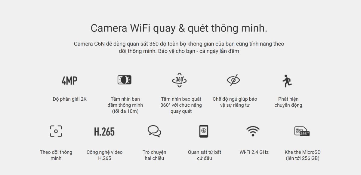Ngoài ra, tính năng độc đáo C6N 2K sẽ hiển thị hình ảnh ban đêm vô cùng rõ ràng và sắc nét. Người dùng đã từng trải nghiệm qua sản phẩm đều cảm thấy hài lòng vì có thể tận hưởng giấc ngủ ngon, nhờ vào đèn LED hồng ngoại được tích hợp để bảo vệ ngôi nhà an toàn 24/7.