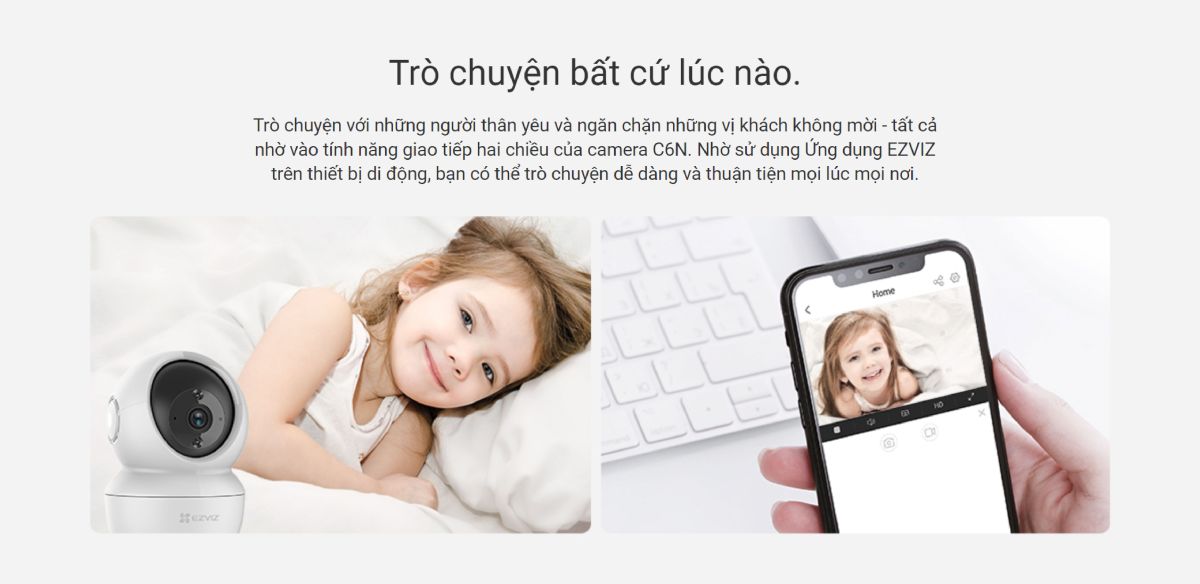 Ngoài việc lưu giữ những kỉ niệm đáng nhớ, camera EZVIZtrong nhà sẽ giúp bạn kết nối với các thành viên trong gia đình tại nơi làm việc hoặc khi bạn đi du lịch. Bạn có thể tham gia trò chuyện thông qua tính năng đàm thoại hai chiều, nhờ đó mà bạn sẽ dễ dàng hơn khi liên lạc với những người thân yêu của mình.