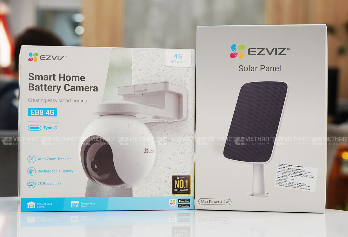 Phù Hợp với Môi Trường Ngoài Trời: Wi-Fi và nguồn điện có thể là rắc rối cho việc lắp đặt camera ngoài trời. EB8 giải quyết vấn đề này với việc sử dụng pin và kết nối 4G LTE. Camera có thiết kế chống chịu thời tiết, chống mưa, tuyết, và có thể sạc bằng năng lượng mặt trời thông qua tấm bảng điều khiển năng lượng mặt trời tương thích.