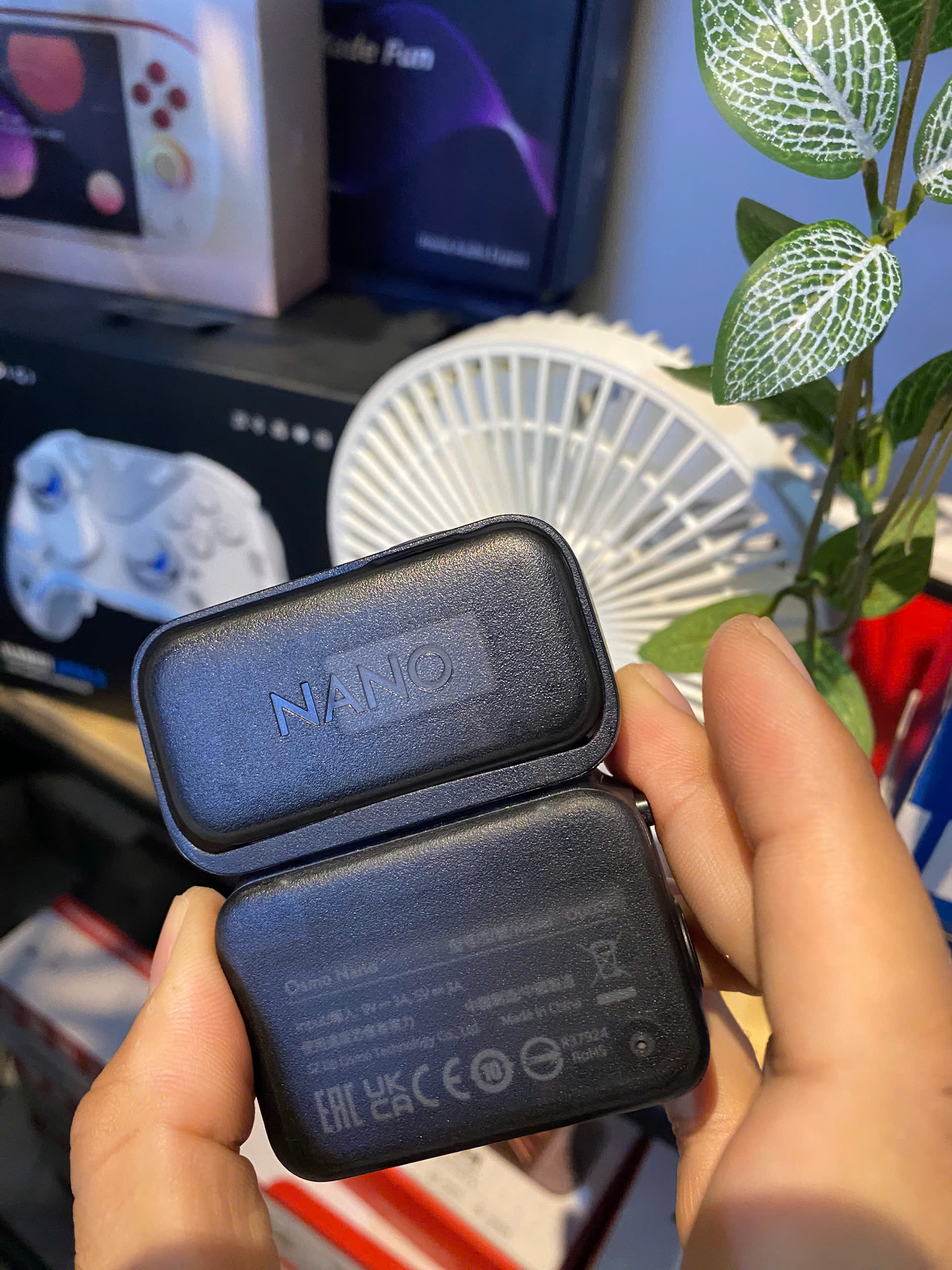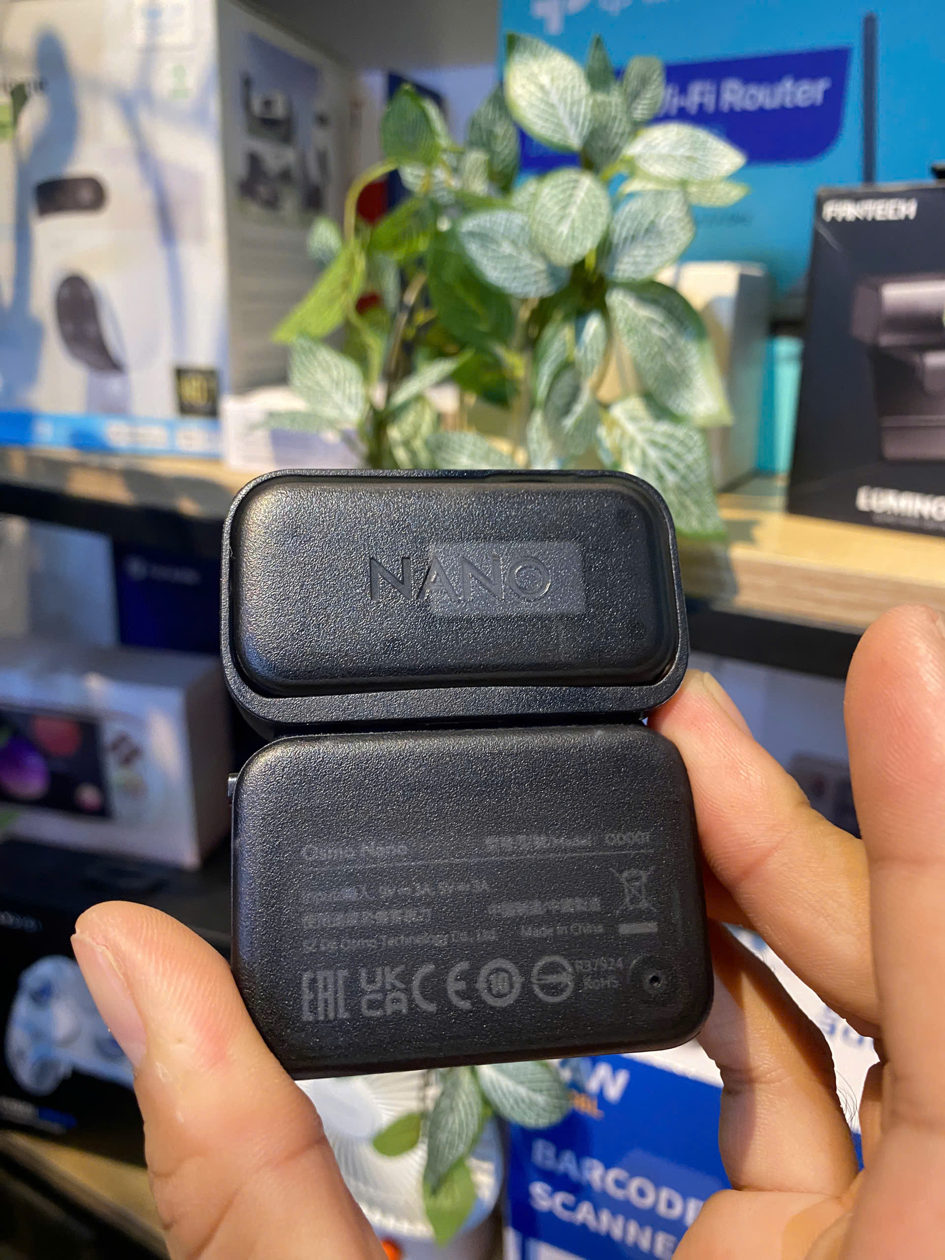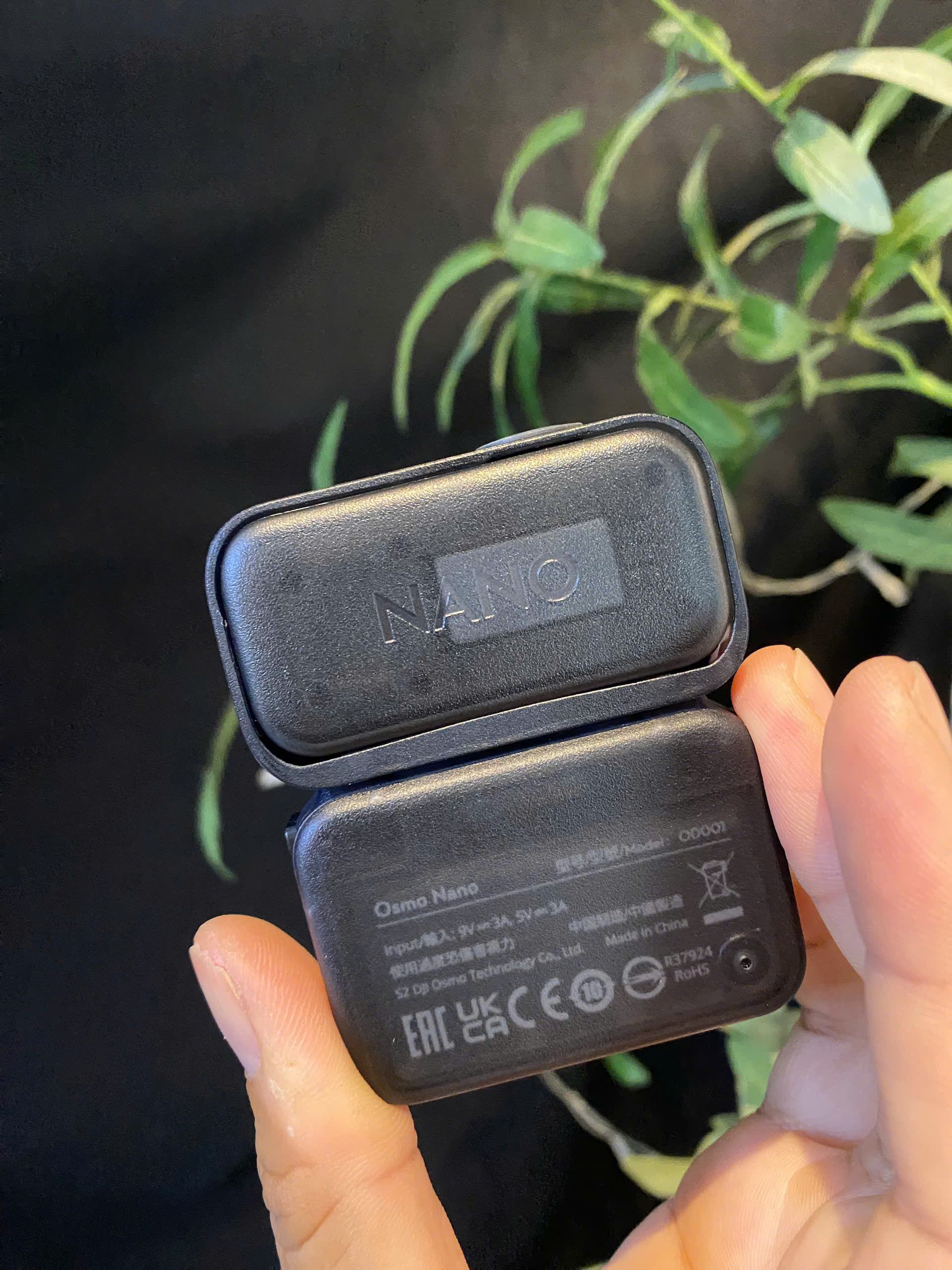 Sự nhỏ gọn của DJI Osmo Nano khi gắn trên Dock.Mặt sau của DJI Osmo Nano 64G khi gắn trên Dock.