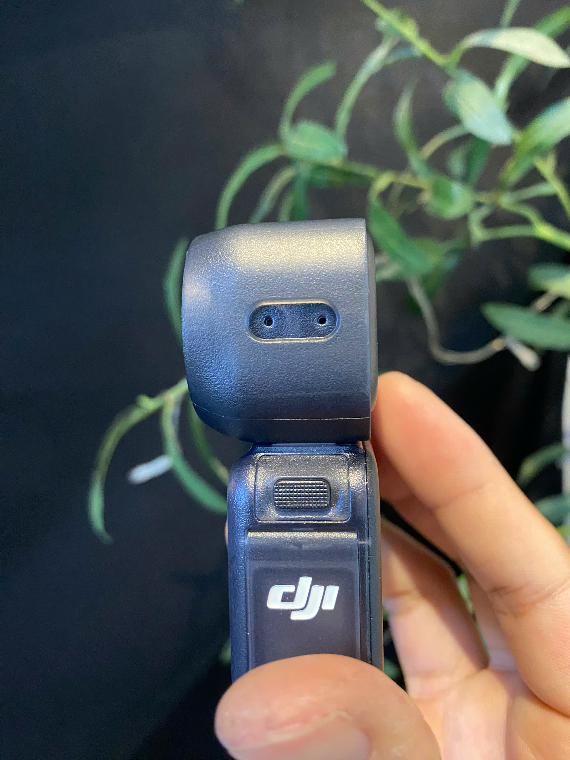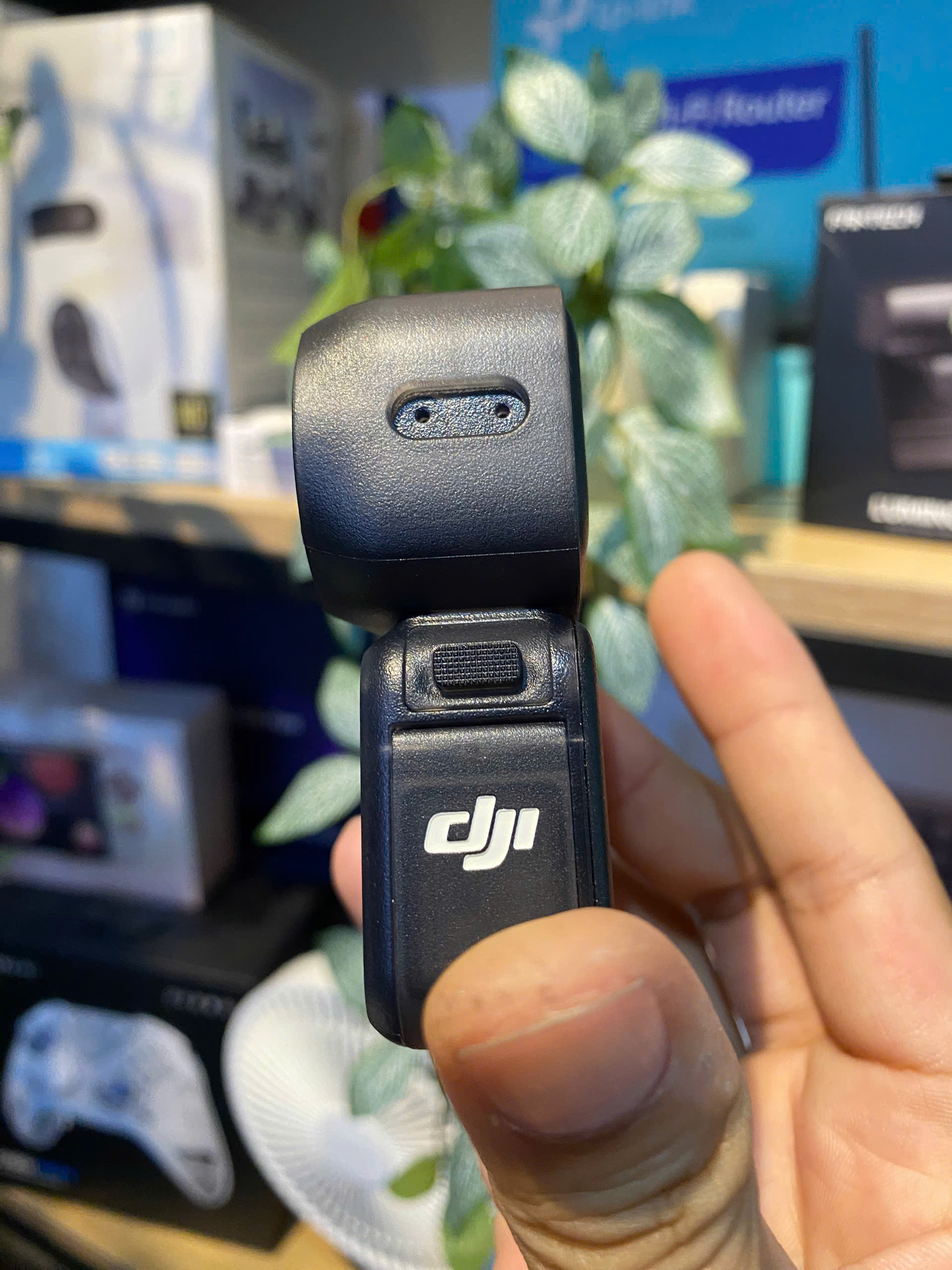 Khi gắn thân máy vào Dock, tổng trọng lượng máy đạt khoảng 180g. Cảm giác cầm lúc này cực kỳ đầm và chắc tay, tương đương một chiếc smartphone cỡ vừa. Nó biến thiết bị từ dạng tí hon thành một con Action Cam truyền thống, giúp việc canh khung hình chuẩn xác và ổn định hơn hẳn.