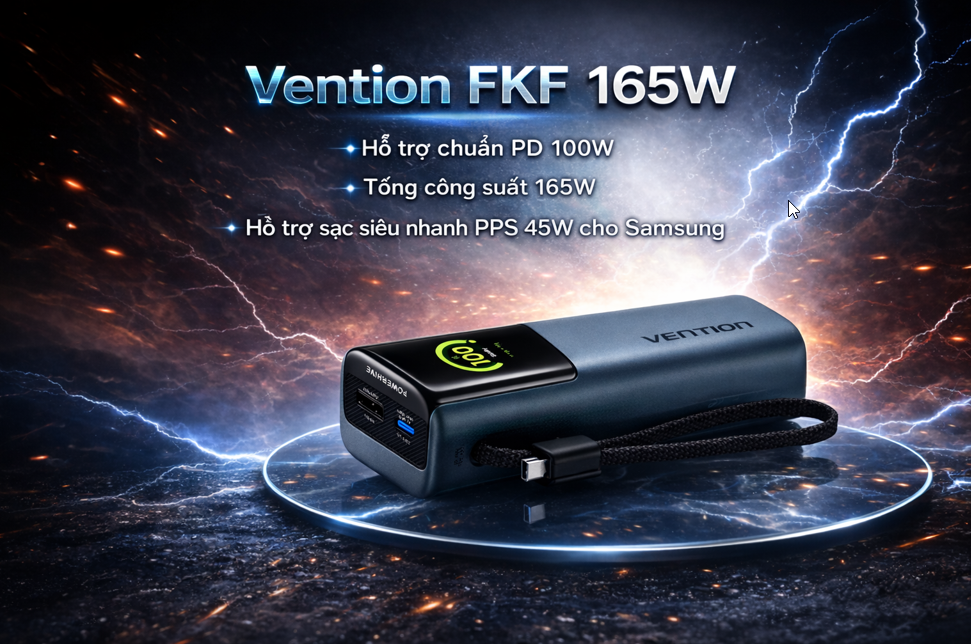 Bạn chỉ dùng cho điện thoại cơ bản: Với nhu cầu chỉ sạc iPhone hay điện thoại tầm trung, một cục pin sạc dự phòng 20W-30W nhỏ gọn sẽ phù hợp và nhẹ nhàng hơn là "quái vật" 165W này. Vention FKF có thể quá khổ và thừa công suất cho nhu cầu đơn giản của bạn.