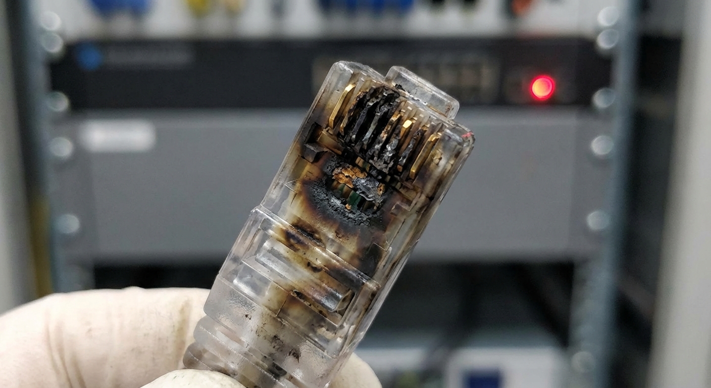 Với PoE++ Type 4, dòng điện chạy qua các chân tiếp xúc của đầu RJ45 là rất lớn. Tuyệt đối không rút nóng (hot-unplug) cáp mạng khi thiết bị đang hoạt động. Khi bạn rút ra, một tia lửa điện li ti (arcing) sẽ xuất hiện, đốt cháy lớp mạ vàng trên chân tiếp xúc của Switch. Theo thời gian, cổng đó sẽ bị oxy hóa, tăng điện trở và hỏng hoàn toàn.