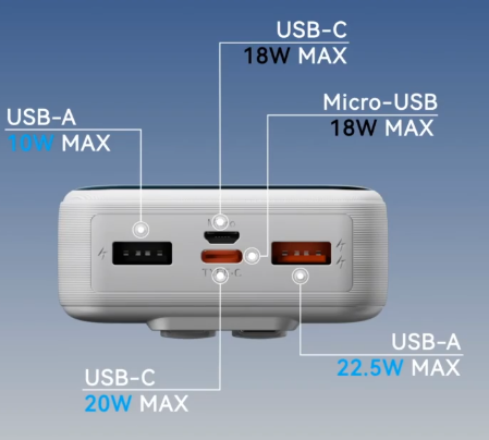 Thông thường, các hãng hay đưa ra những con số rất đẹp trên vỏ hộp, nhưng thực tế sử dụng có được như vậy không thì bạn cần nhìn vào bảng dưới đây để thấy rõ năng lực của pin dự phòng Vention FHO 22.5W.